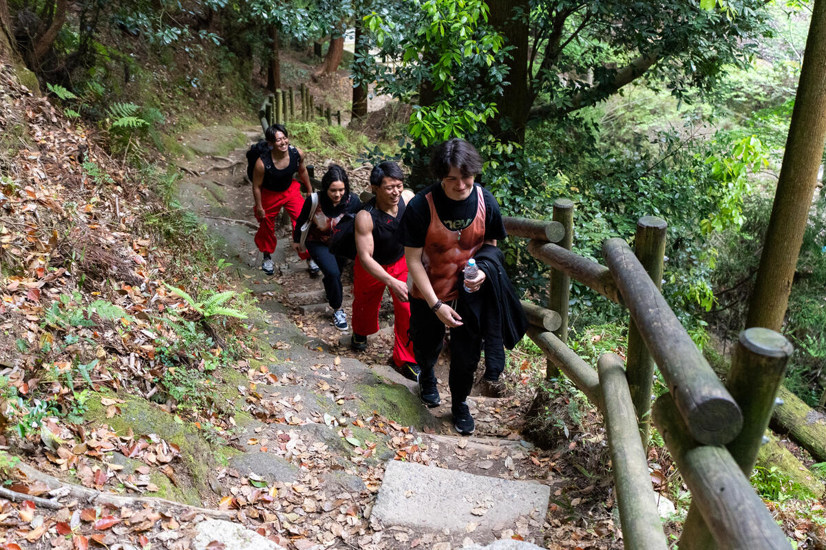 マッチョなガイドと一緒に夕暮れの山を登って、